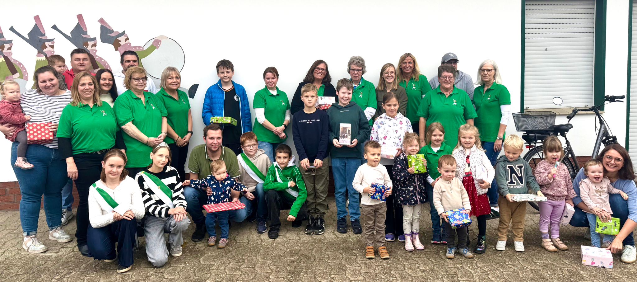 Die Gewinnerkinder des Luftballonwettbewerbs (mit Fundort und zurückgelegter Strecke): 1. Mila von der Wellen (37154 Nordheim – 132,0 km) 2. Emma Möller (28844 Weyhe – 68,7 km + 31595 Steyerberg – 42,5 km) 3. Michel Eisfeld (27232 Sulingen – 38,4 km) + Frederik Fieseler (27232 Sulingen – 38,4 km) 4. Till Horstmann (49406 Drentwede – 37,3 km) 5. Robin Hesse (32351 Stemwede – 1 km) + Elisa Schmidt (32351 Stemwede – 1 km). Der Schützenverein Wehdem stellt mit Matthias Pelzer (2. v.r.) den Vize-Kreisjungkönig 2024. Mannschaftswertung: Platz 1: „Junge Garde“ (mit Sebastian Siebe, Falk Fieseler, Arne Siebe, Guliano Grecco und Jessica Röhe) - Platz 2: „Alte Garde“ (mit Wilfried Wöckner, Dieter Grunwald, Horst Tiemann und Detlev Klange) - Platz 3: „Jagdgenossenschaft“ (mit Guido Pelzer, Thomas Haller, Hein-Gerhard Wolf, Daniel Pelzer, Gerhard Schnier und Günter Wiese) Einzelwertung: Platz 1: Jessica Röhe („Junge Garde“) - Platz 2: Andre Koch („Heimatverein“) - Platz 3: Detlev Klanke („Alte Garde“) Schützenverein Wehdem hat den Jägerpokal verteidigt Über 50 Teilnehmer bei der Mai-Tour 2024. Neuer Mai-König: Luca Reckmann, Kinder- und Jugendpokalsieger: Bennett Siebe Sieger des Blockpokalschießens 2024: Bester Block: -Kirchberg-, bester Blockwart: Nico Steinkuhle (Block -Flötsheide-), bester Einzelschütze: Matthias Pelzer (Block -Mesenkamp-Ost-) Königs- und Adjutantenball 2024: Eckhard Brehop, Königinnen-/Prinzenpokal: Thomas Harbig, Adjutantenpokal: Holger Brehme, Kreiskönigspokal: Jessica Röhe, Jungkönigspokal: Manuel Röhe, Jung-Adjutantenpokal: Matthias Pelzer, Partnerpokal: Lara Högemeier Neu- und wiedergewählte Ehrenämter: 1. Vorsitzender: Michel Jürgens (Wiederwahl), 3. Kassierer: Timo Griepenstroh (Wiederwahl), 1. Sportleiters: Manuel Röhe (Wiederwahl), Sozialwartin: Nadine Erbe/Streich, Spieß: Yannic Windhorst, Fahnenoffizier: Eckhard Brehop, Kassenprüfer: Dennis Heitmann. Jürgen Lütkemeier übergab den Tambourstab an seine Tochter Lisa. Außerdem wurden folgende Blockwarte benannt: „Dillenhöhe“: Jens Timmermann, „Friedenskamp“: Andre Thiesing, „Auswärtigen“: Jens Wiese. Verabschiedet wurde Hallenwart Gerhard Nolte. Die Gewinner des Luftballonwettbewerbs anlässlich des Wehdemer Schützenfestes 2023 Die Top-3-Platzierungen beim Dorfpokalschießen 2023: Mannschaftswertung: Platz 1:„Sportschützen“ mit Heike Siebe, Jessica Röhe, Thomas Quebe, Detlev Klanke und Sebastian Siebe Platz 2: Die „Nachtschicht“ mit Sarah Wörmann, Jörn Schäffer, Martin Lütkemeier, Claus Wörmann und Jörg Siekermann Platz 3:„Feuerwehr“ mit Peter Lahrmann, Matthias Pelzer, Mike Schäfer, Manuel Röhe, Dennis Heitmann und Henning Holle Einzelwertung: Platz 1: Jessica Röhe („Sportschützen“) Platz 2: Falk Fieseler („IGA“) Platz 3: Detlev Klanke („Sportschützen“) Kreiskönigsschießen 2023: Gruppenbild aller 27 Majestäten - darunter auch Schützenkönig Wilfried Rüter und die Wehdemer Fahnenträger mit der Kreisstandarte Kreiskönigsschießen 2023: Gruppenbild aller 25 Jung-Majestäten - darunter auch Jungschützenkönig Christian Schnier Sieger des Mai-Königsschießen (v.l.): Tiziano Röhe, Neviano Röhe (Mai-Jugendpokal-Sieger), Falk Fieser (Vorstand), Bennett Siebe, Eila-Marie Niermann (Mai-Königin). Sieger Block „Molkenstraße“ vor „Kirchberg“ und „Flötsheide“. Beste Einzelschützin wurde Manuela Röhling; bester Blockwart Nico Steinkuhle. Königs- und Adjutantenpokal 2023: Königspokal: Jörg Siekermann (30/9), Königinnenpokal: Stephanie Angelbeck (28/8), Adjutantenpokal: Guido Pelzer (23/7), Jungkönigspokal: Martin Lütkemeier (29/9), Partner-Pokal der Jungschützen: Gabi Lütkemeier (28/8), Jung-Adjutantenpokal: Matthias Pelzer (28/8) Kreiskönigsschießen in Levern 2022 Kreisjungkönigsschießen in Levern 2022 Vereinsmeister 2021: Charlott Klamor / Vereinsmeister Seniorenklasse 2021: Detlev Klanke Maikönigin 2022: Kirsten Pest Wie bereits in der Tagespresse zu lesen wurde der Schützenverein Wehdem von der Volksbank Lübbecker Land mit einer Spende für die 750,- Euro bedacht. Während der Übergabe in den Räumen der Geschäftsstelle Wehdem bedankte sich unser Vorsitzender Michael Jürgens recht herzlich bei dem Geschäftsstellenleiter Herrn Andreas Wetzel. Michael hob hervor, dass in Zeiten, in denen das Schützenleben nahezu zum Erliegen gekommen ist, der Verein sich umso mehr über solch eine Zuwendung freut. Die Spende ist für die Vorstandskollegen und ihn ein positives Signal und Belohnung zugleich in der Vergangenheit gute Arbeit für den Verein und das gesamte Dorf geleistet zu haben. Vielmehr ist es aber auch Ansporn, sich weiter für den Verein und die Allgemeinheit einzusetzen. Die Spende soll für die Jugendarbeit eingesetzt werden.
