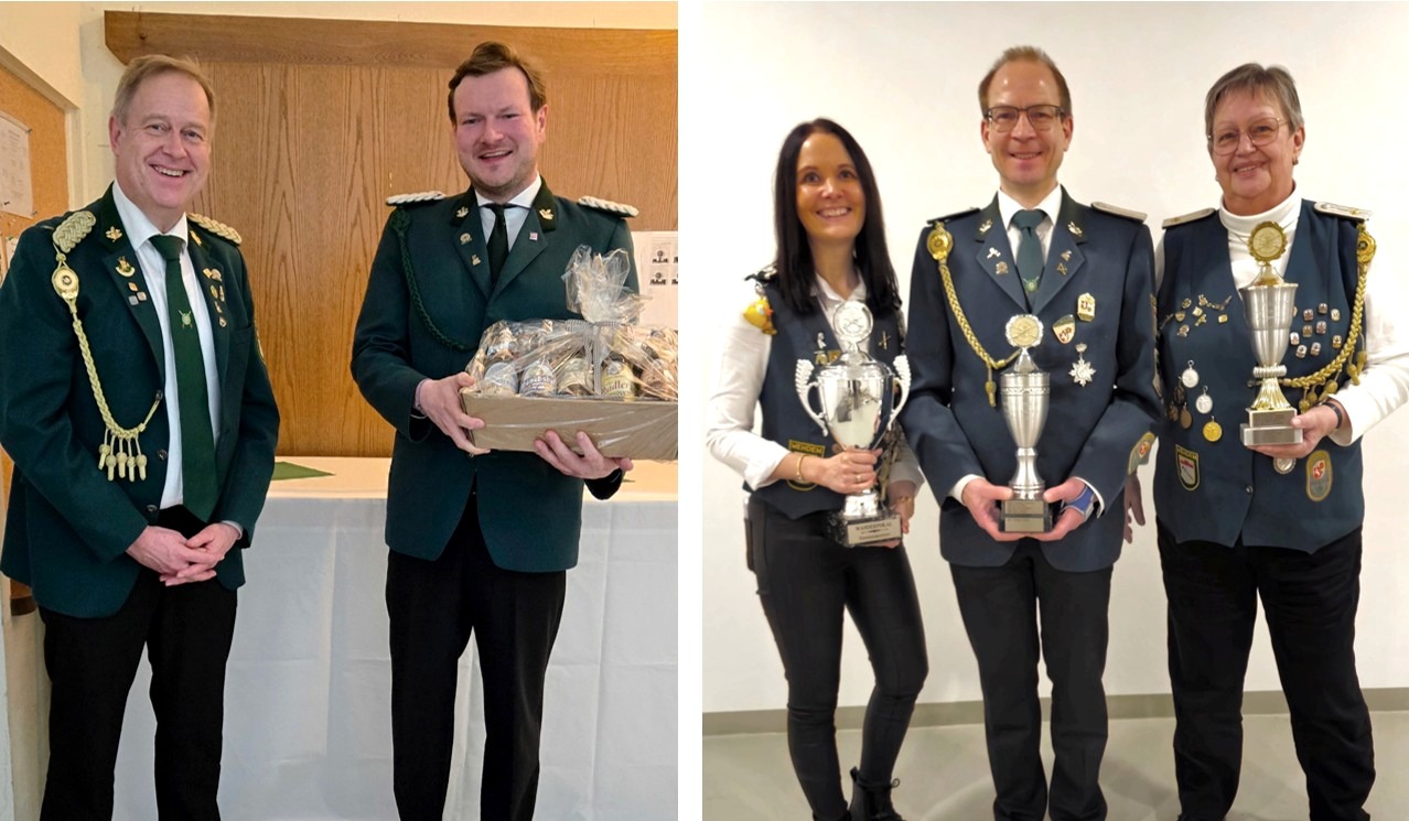 Ordentliche Mitgliederversammlung 2025: - Ergebnisse der Vorstandswahlen: 2. Vorsitzender: Falk Fieseler (Wiederwahl), 2. Schriftführer: Jörg Siekermann (Wiederwahl), 1. Kassierer Guido Angelbeck (Wiederwahl), 3. Sportleiter: Detlev Klanke (Wiederwahl), Hauptmann: Dennis Heitmann (zuvor 18 Jahre lang Wilfried Rüter), Kassenprüfer: Heike Brehop und Jürgen Kokemoor. - Ehrung der Vereinsmeister: 1. Platz bei den Senioren: Klaus-Dieter Hohlt (mit 183 Ring) / 1. Platz in der Altersklasse: Thomas Quebe (mit 187 Ring) / 1. Platz bei den Schützen: Jessica Röhe (mit 192 Ring) und somit verdiente Gesamtvereinsmeisterin.
